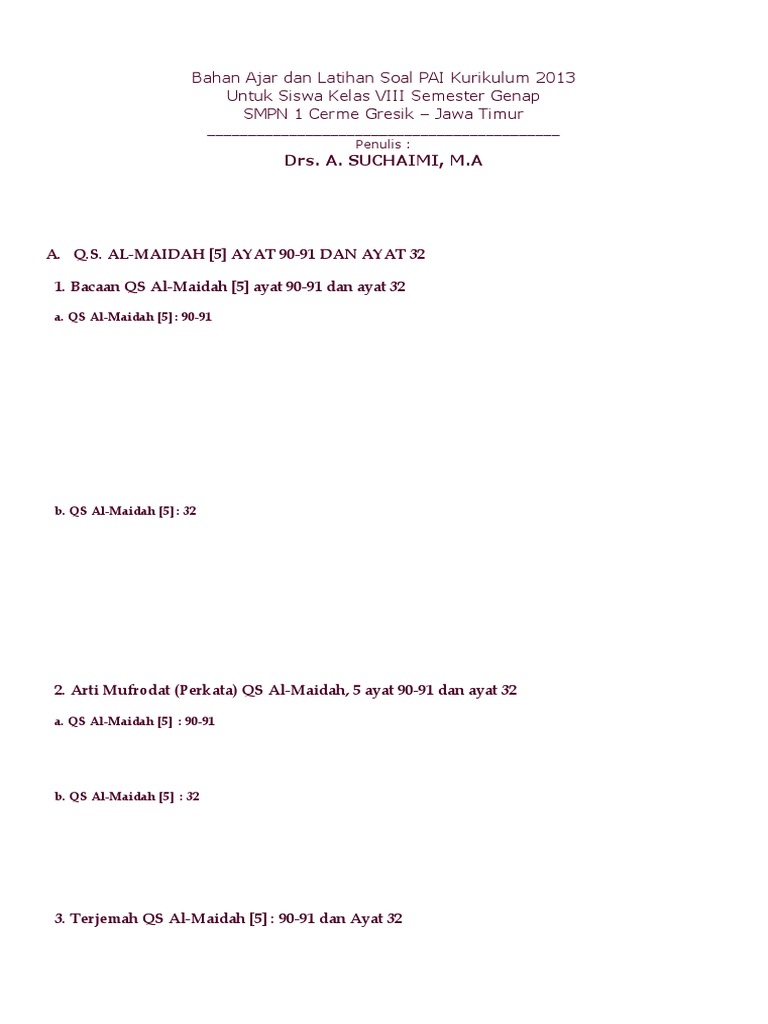 Surat Al Maidah Ayat 32 Arab Latin Arti Tafsir Dan Kandungan from bersamadakwah.net Hukum tajwid surat al maidah ayat 32. Bacaan doa tidur, sebelum dan bangun, lengkap beserta artinya. Ia menambahkan sesudah konteks ini bahwa sada melanjutkan kisahnya, maka aku bangkit mengajak mereka untuk masuk islam. Alif lam mim bogor download mp3. Apakah yang terkandung dalam surat al maidah ayat 3? Artinyadiharamkan bagimu( memakan) bangkai,darah,daging babi,(daging hewan) yang disembelih bukan atas (nama) allah,yang tercekik,yang terpukul. Σv = jumlah varian kata (berdasarkan akar kata). Segala puji bagi allah, tuhan seluruh alam..